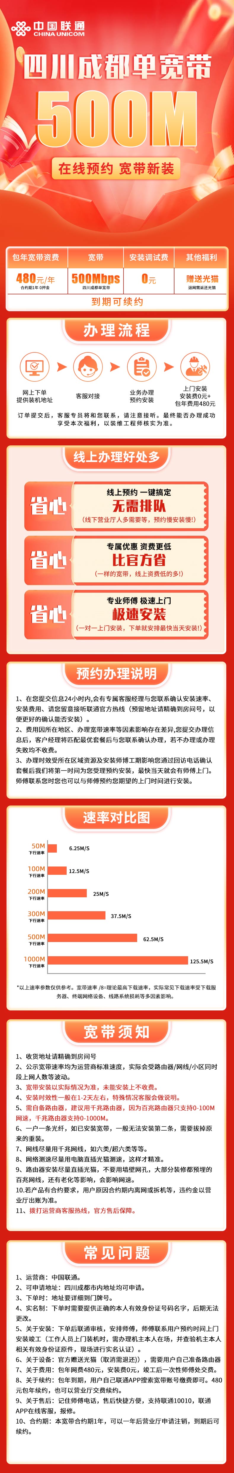 简单说:480元包年500M宽带,先预约后办理,不成功不收费