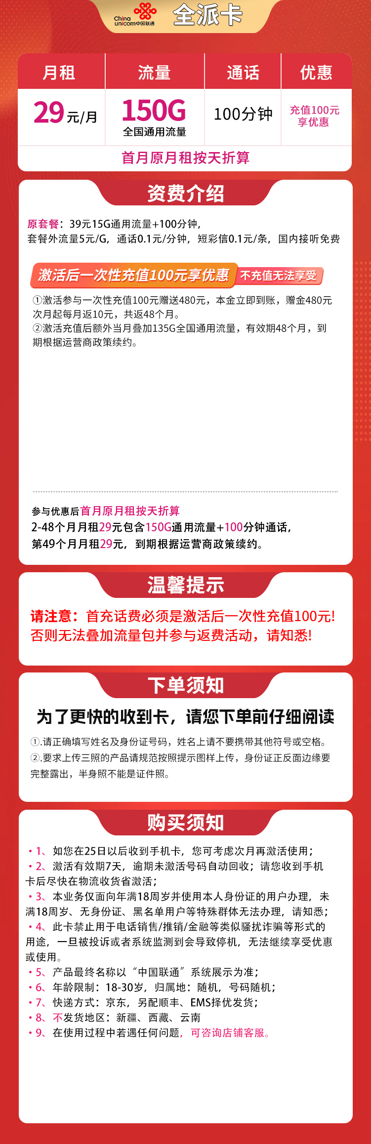 ②激活充值后额外当月叠加135G全国通用流量,有效期48个月,到期根据运营商政策续约。