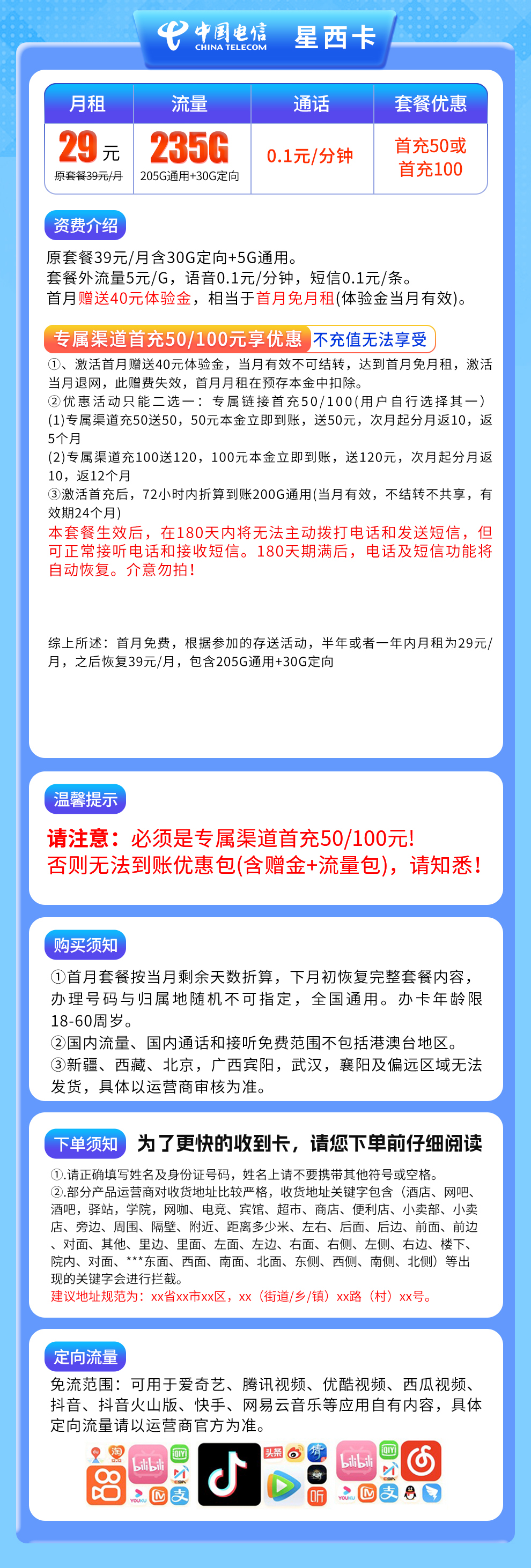 本套餐生效后,在180天内将无法主动拨打电话和发送短信,但是可正常接听电话和接收短信,180天期满后,电话及其短信功能将自动恢复,介意勿拍