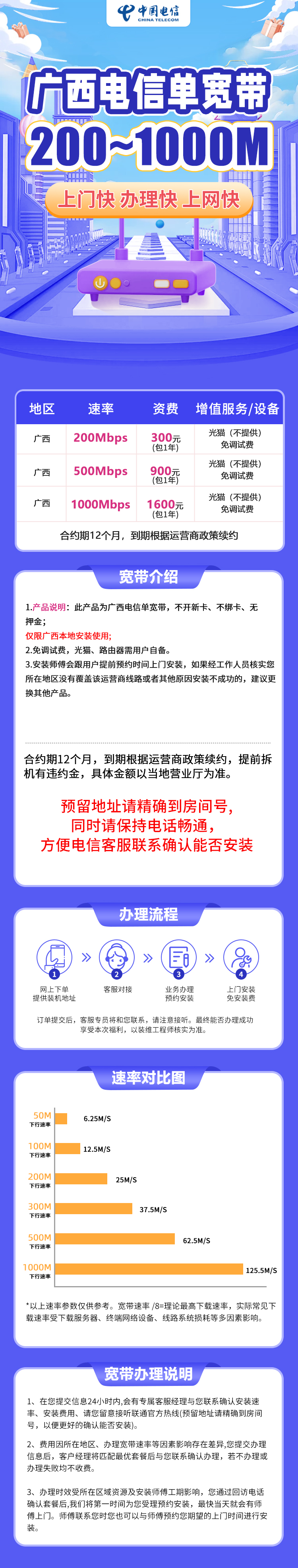 广西电信900元包1年单宽带500M【免调试费】