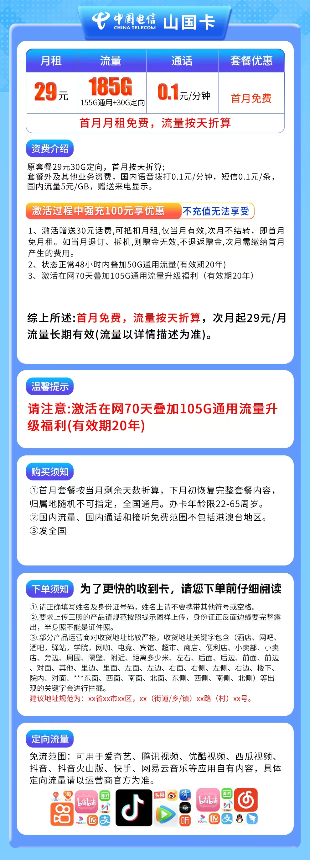 N3电信冲灵卡19元160G+100分钟【只发安徽】