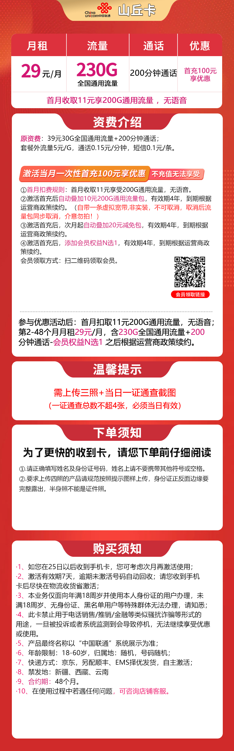 第2-48个月月租29元/月,含230G全国通用流量+200分钟通话+会员权益N选1之后根据运营商政策续约。