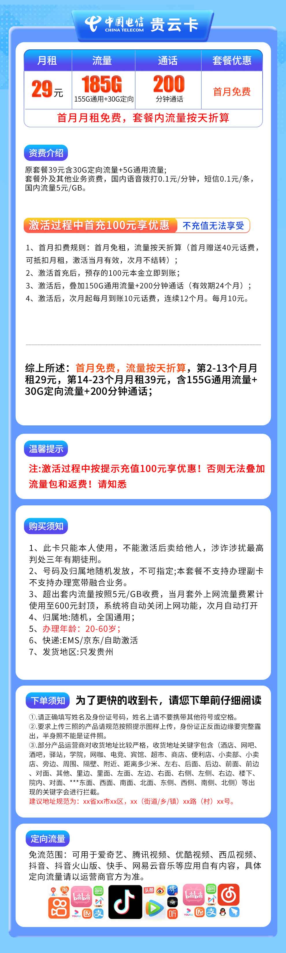 ✅第2-13个月:29元月租=185G通用流量+200分钟通话