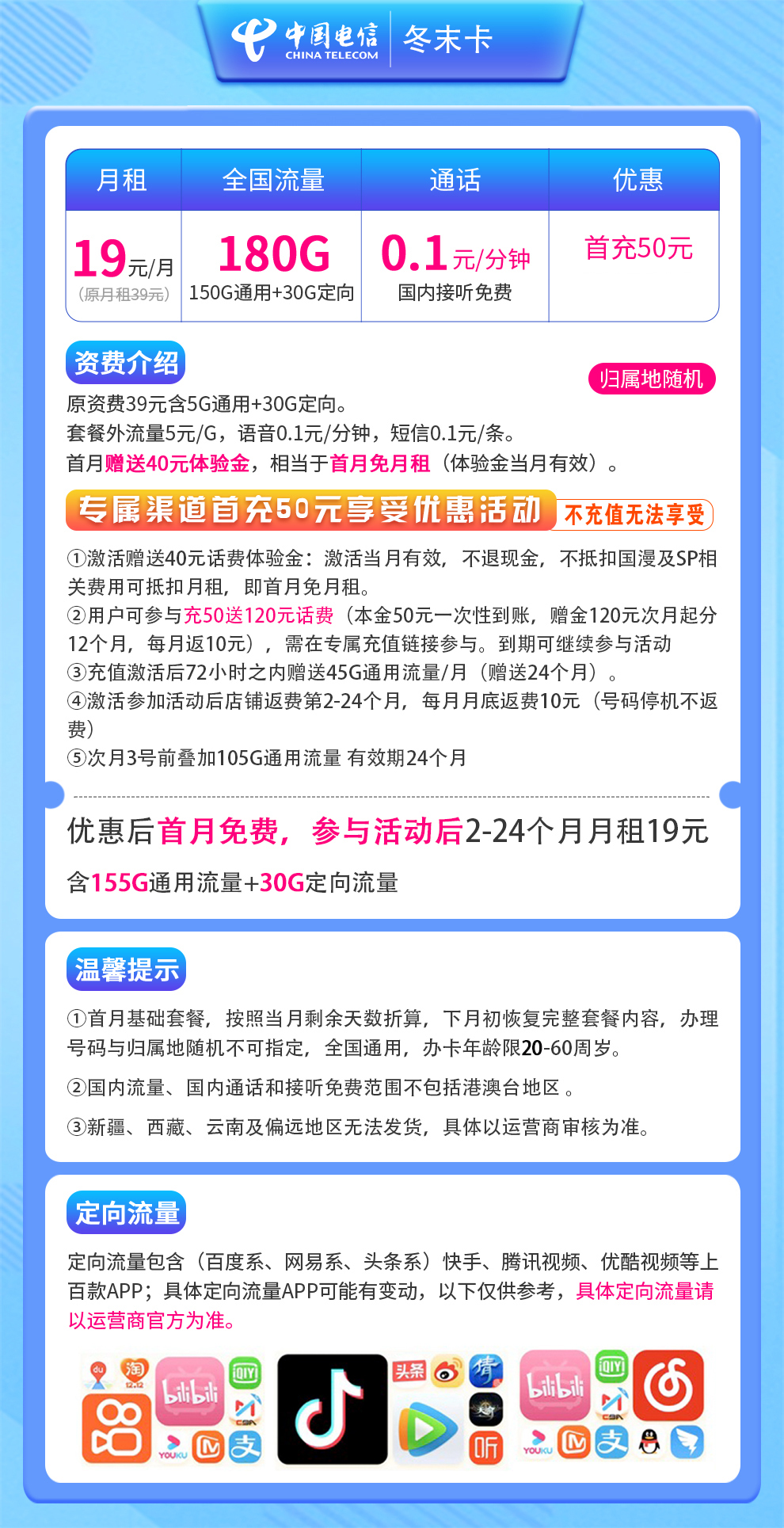 2.激活后72小时内叠加45G通用流量(原月租29元则叠加50G),(有效期24个月到期可续)。