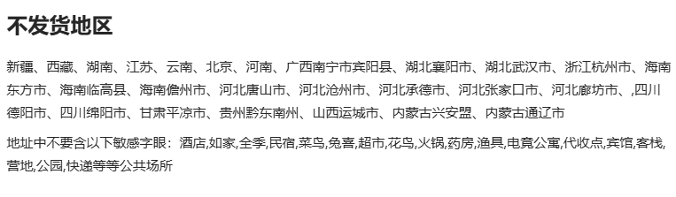 不发货地区: