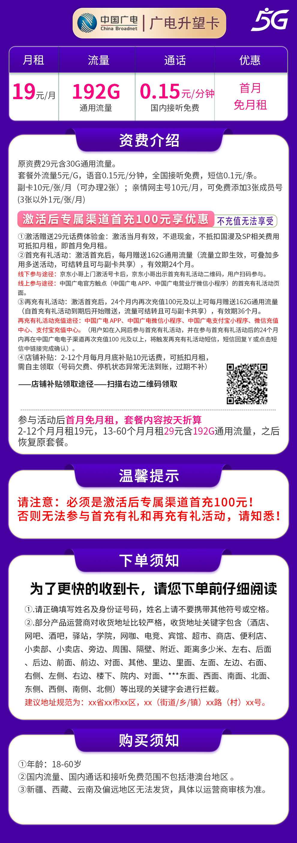 2、首充有礼活动:激活首充后,每月赠送162G通用流量(流量立即生效,可叠加多用多送活动,可结转且可与副卡共享),有效期24个月。