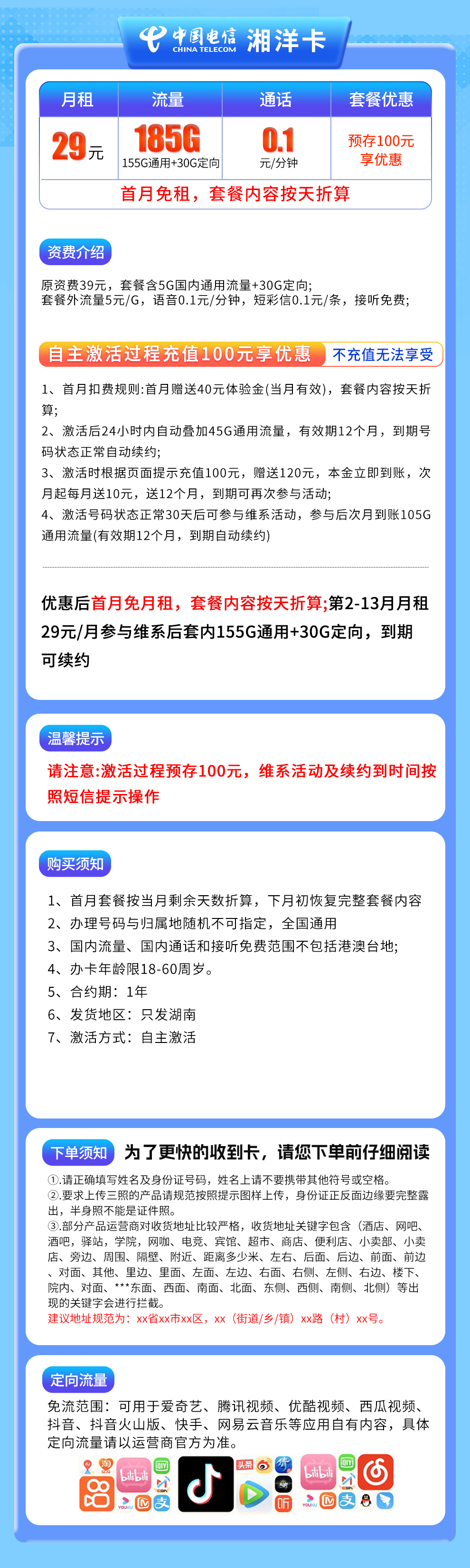 第2-13个月月租29元,参与维系活动流量可升级至155G通用流量+30G定向流量,到期自动续约;
