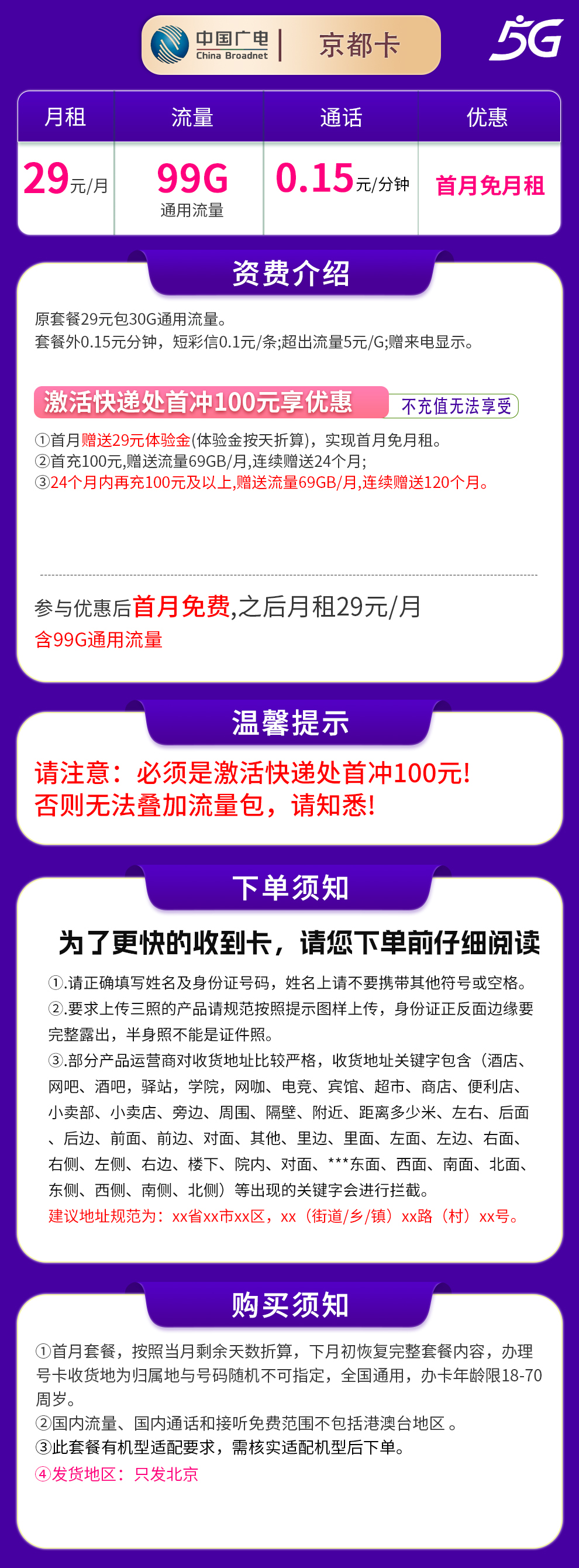 广电京都卡29元99G【只发北京】
