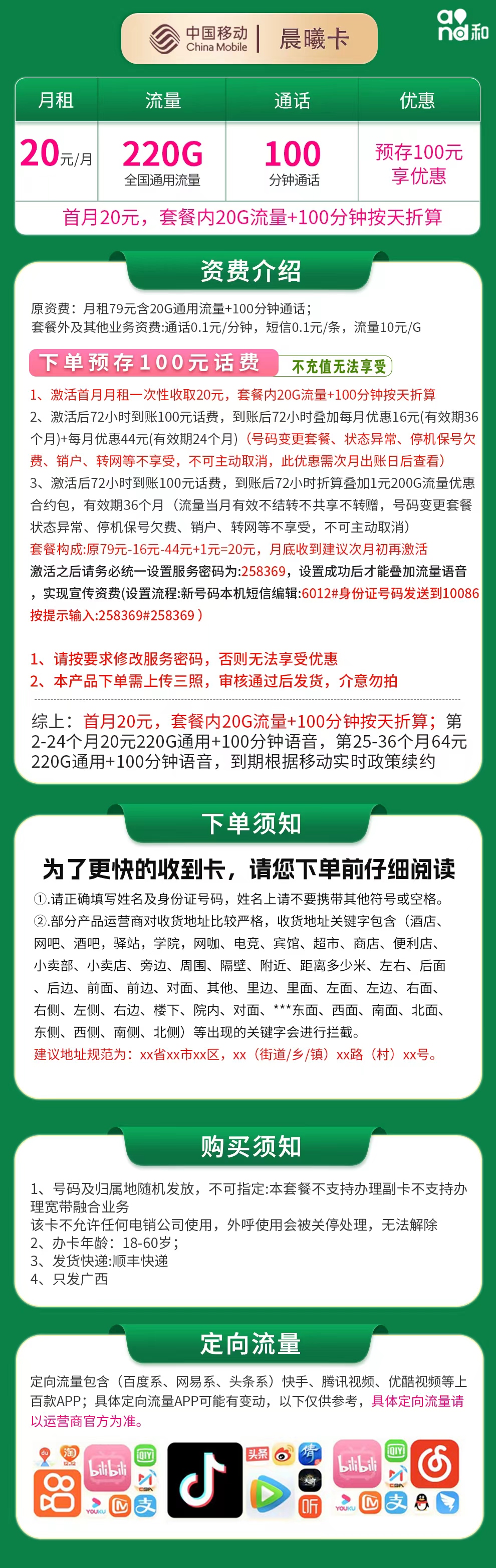 第25-36个月64元220G通用+100分钟语音,到期根据移动实时政策续约